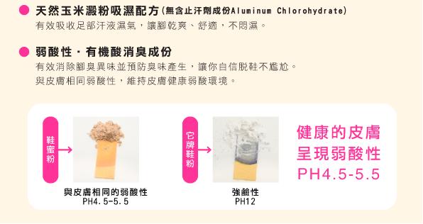 還有還有自從使用鞋蜜粉後,襪子都不會有”怪味道”ㄟ,我要再買給我女兒用,真是不錯的商品.